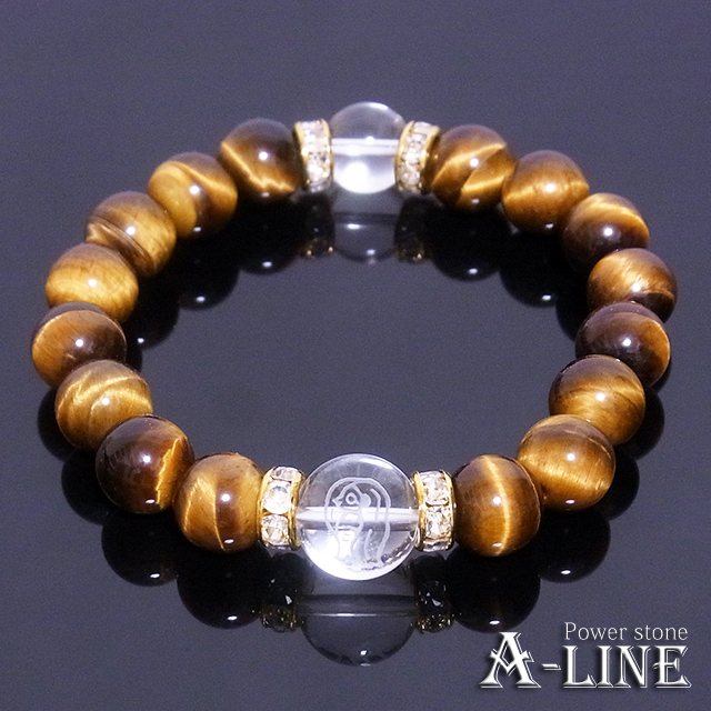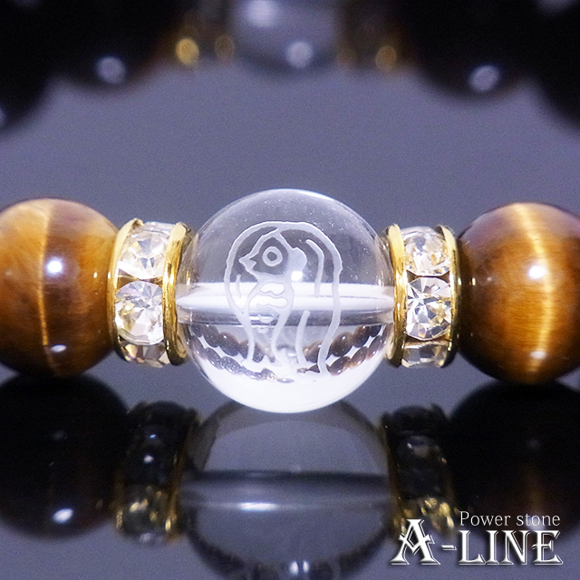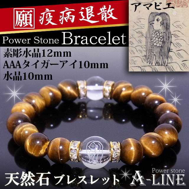 パワーストーン ブレスレット 疫病退散 アマビエ素彫水晶12mm AAAタイガーアイ10mm PW-3410