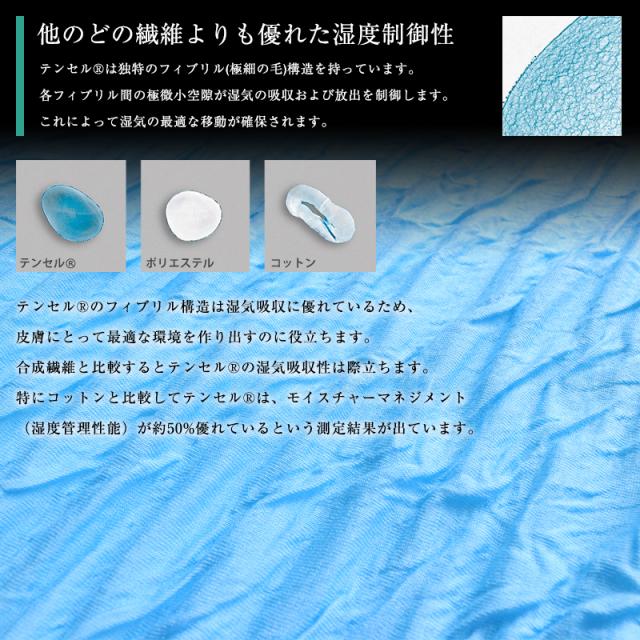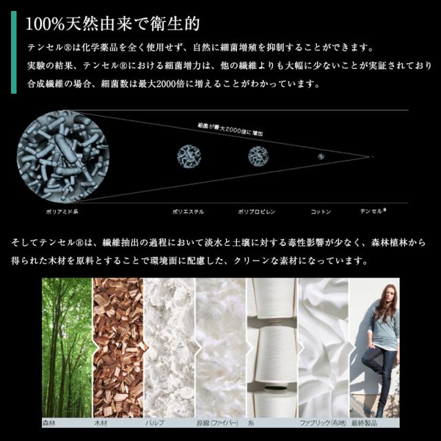 ■素材には、シルクのようなきめ細やかな滑らかさと光沢感があり木材を主原料とした再生繊維を使用した「TENCEL®」を採用。