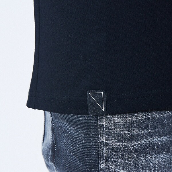 国産天竺を使用。しっかりとした素材感は耐久性と透け防止の特徴があります。脇下にデオスマイル(防臭)テープを起用して着用時の機能性も高めています。