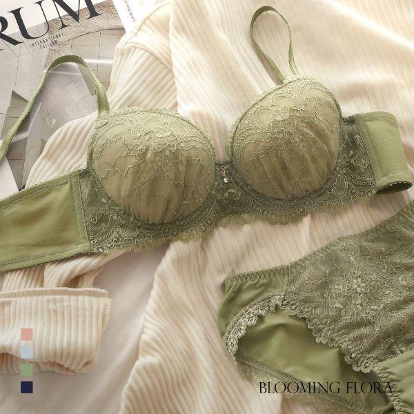 ブラジャー ショーツ セット 大きいサイズ アンダー80 脇高 総レース B C D E F 上下セット ナチュラルメイクブラ ブルーミングフローラ
