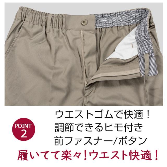 【仕様】ウエストゴム 前ファスナー ウエスト紐 両サイドポケット ウォッシャブル 股下66cm/股下69cm