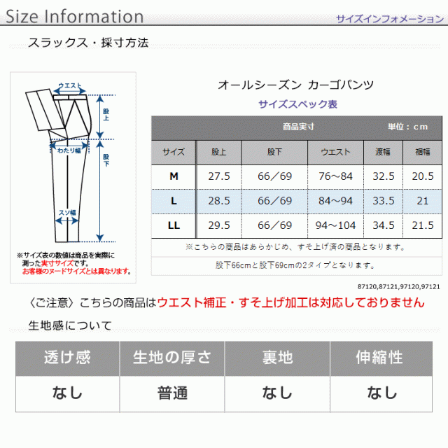 【1】ベージュ 股下66cm (87120-1) 股下69cm (87121-1)