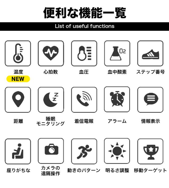 2020年最新版スマートウォッチは内蔵している温度センサーで手首の体温を常にスマートウオッチから直接測定可能で常に発熱チェックが簡単にできようになりました。アイコンを選択しますと自動測定!(この機器は医療機器ではございません。提供されたデータはあくまで参考用になります。