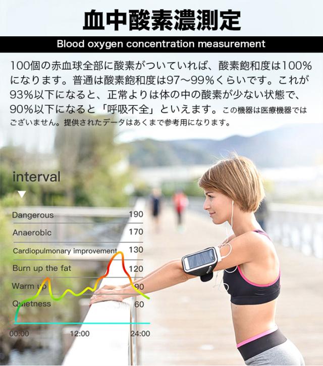 100個の赤血球全部に酸素がついていれば、酸素飽和度は100%になります。普通は酸素飽和度は97〜99%くらいです。これが93%以下になると、正常よりは体の中の酸素が少ない状態で、90%以下になると「呼吸不全」といえます。★この機器は医療機器ではございません。提供されたデータはあくまで参考用になります。