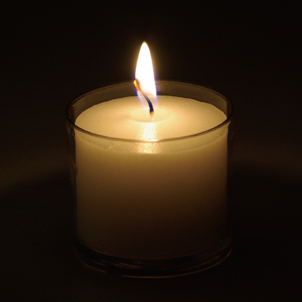 落としても割れない丈夫なポリカーボネート製カップに入っています。ポリカーボネートはガラスのような透明感があり熱に強いです。また、カップの中で燃焼するので裸火の心配や溶けたロウがこぼれることがないので、安心してお使いいただけます。