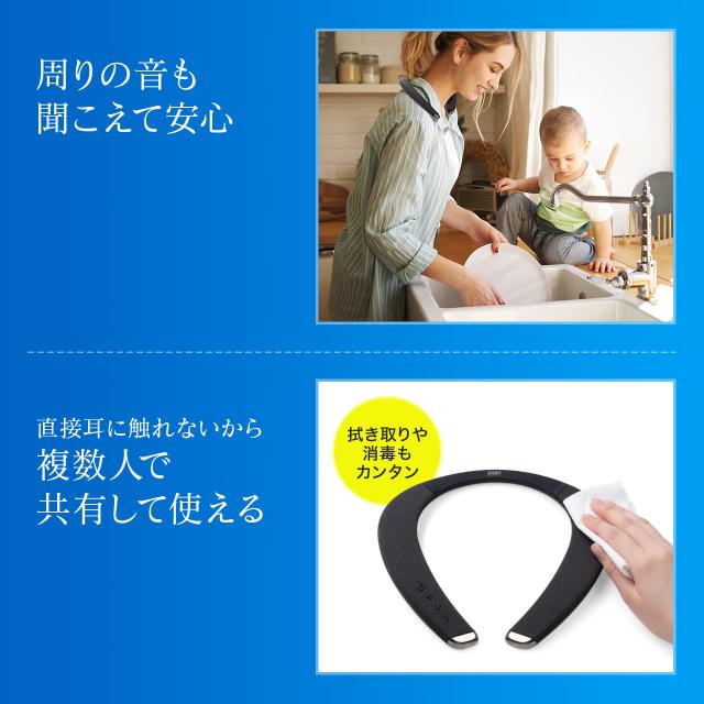 ●肩にのせるウェアラブルスピーカーです。●タブレットやテレビとBluetooth接続することで臨場感あふれるサウンドを楽しめます。