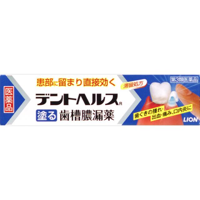 【商品説明:】デントヘルスRは歯ぐきや歯周ポケットに指で塗り込む塗布タイプの歯肉炎・歯槽膿漏薬です。○歯ぐきのはれ・出血・痛み、口のねばり、口臭といった歯肉炎・歯槽膿漏の諸症状、口内炎に優れた効きめがあります。○だ液に流されにくい滞留処方で、4つの有効成分が患部に留まり歯ぐきの奥まで浸透し、すぐれた効果を発揮します。○歯ぐきに塗りやすく、爽やかな使用感のゲルタイプです。【用法・用量:】○歯肉炎・歯槽膿漏:1日2回(朝・晩)ブラッシング後、適量(約0.3g、約1.5cm)を指にのせ、歯ぐきに塗り込んでください。○口内炎:1日2〜4回、適量を患部に塗ってください。【内容量:】20g×2【製造販売元(会社名):】ライオン(株)