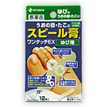 【商品説明:】○スピール膏 ワンタッチEXは、サリチル酸の角質軟化溶解作用を利用した角質剥離剤です。厚く硬くなった皮ふをやわらかくし、うおの目、たこ、いぼの角質を取り去ります。また、付属の皮ふ保護シールにより、患部にのみ薬剤が付着するように調節できます。【用法用量:1.角質が厚く硬くなっている患部の大きさを確認してください。2.、患部の大きさと同じかやや小さい穴の皮ふ保護シールを台紙からはがし、内側の穴が患部にあたる様に貼ってください。患部の直径が7mm以上の場合は皮ふ保護シールは不要です。3.皮ふ保護シールの穴に薬剤部分があたるように、薬剤付パッドを皮ふ保護シールの真上に貼り、絆創膏部分でしっかりとめます。皮ふ保護シールを使わない場合は患部に直接薬剤付パッドを貼ってください。4.○「ゆびの場合」添付の固定用テープを、薬剤付パッドと皮ふに半分ずつかかる様に貼ります。【内容量:】12枚×2【製造販売元:】ニチバン(株)