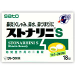 【商品説明:】○ストナリニSは、胃で溶ける外層と腸で溶ける内核からなる時間差作用の二重構造で、1日1〜2回の服用ですぐれた効果をあらわします。○ダツラエキスは、鼻汁分泌を抑え、鼻水などの鼻炎症状に効果をあらわします。○のみやすい白色の糖衣錠です。【用法用量:】○大人(15才以上)・・・1回服用量1錠、1日服用回数1〜2回○15才未満・・・服用しないでください【内容量:】18錠×2【製造販売元:】佐藤製薬(株)