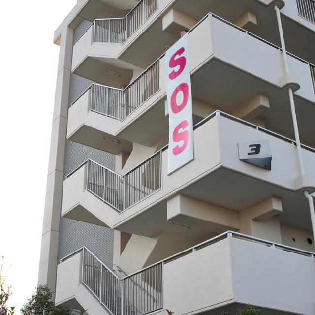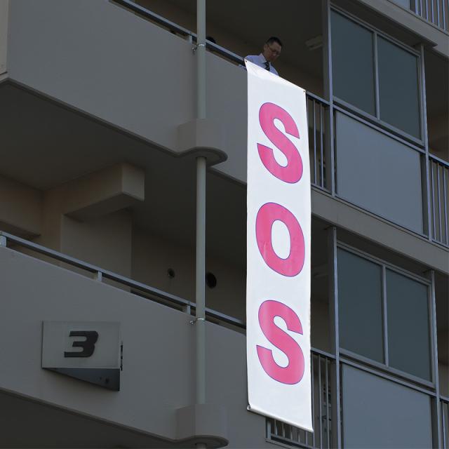 逃げ遅れた際に救助を求めるSOS横断幕です。
