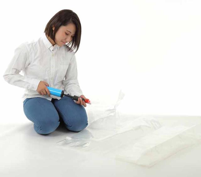 空気入れ付きの災害時用エアーマット。