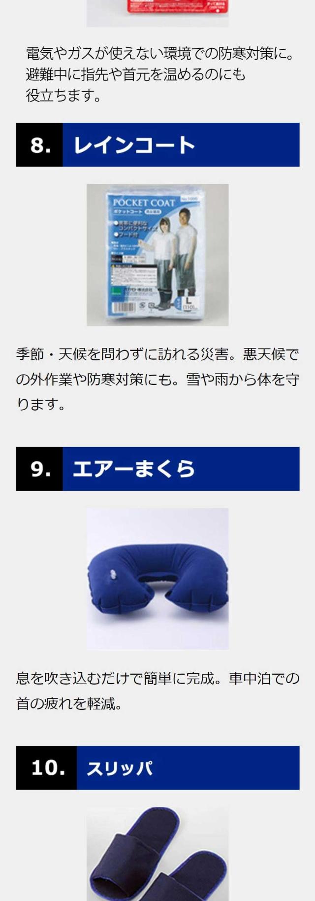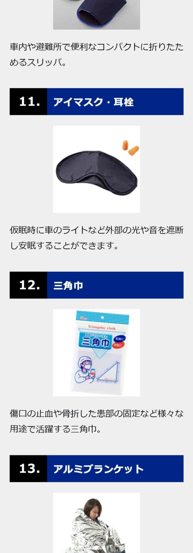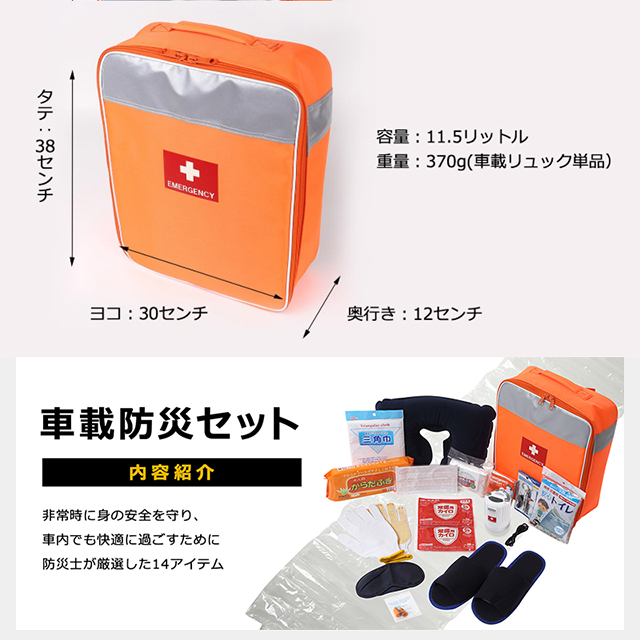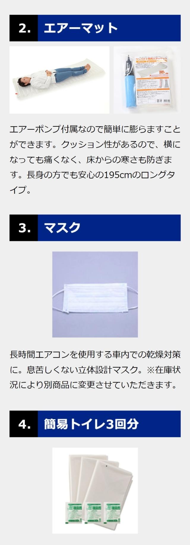 車での移動中の被災や事故の際に、身の安全を守るための防災セット