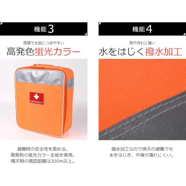 | 生地 | 表生地:ナイロン・蛍光特殊染色・撥水加工 内生地:ナイロン 内ポケット:ナイロンメッシュ |
