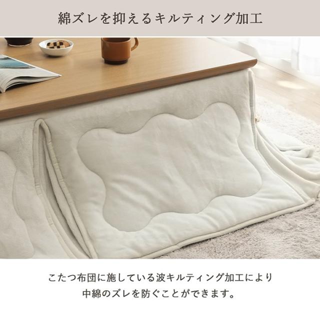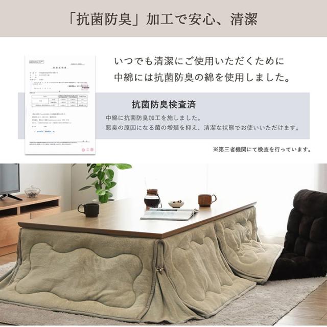 | 【表地】 たれ部=ポリエステル100%(フランネル) 天板部=ポリエステル100%(フランネル) コーナー=ポリエステル100%(フランネル両面起毛) 【裏地】 ポリエステル100%(フランネル) 【中綿】 中空ポリエステル綿100%(抗菌防臭加工) |