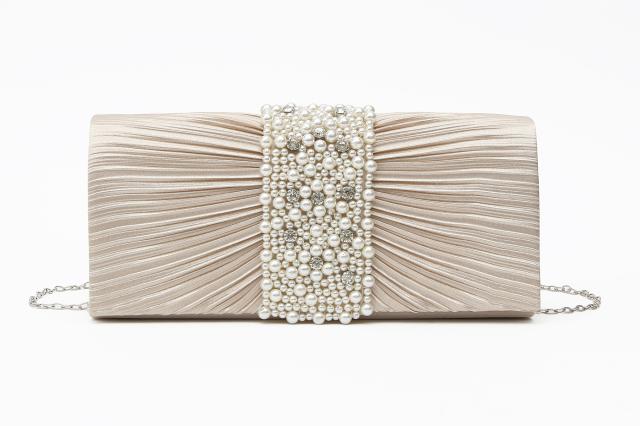 結婚式 バッグ クラッチバック 送料無料 レディース 結婚式 二次会 チェーン付き パーティードレス 送料込み ホワイトパールプリーツクラッチバッグ ショルダーバッグ レディース
