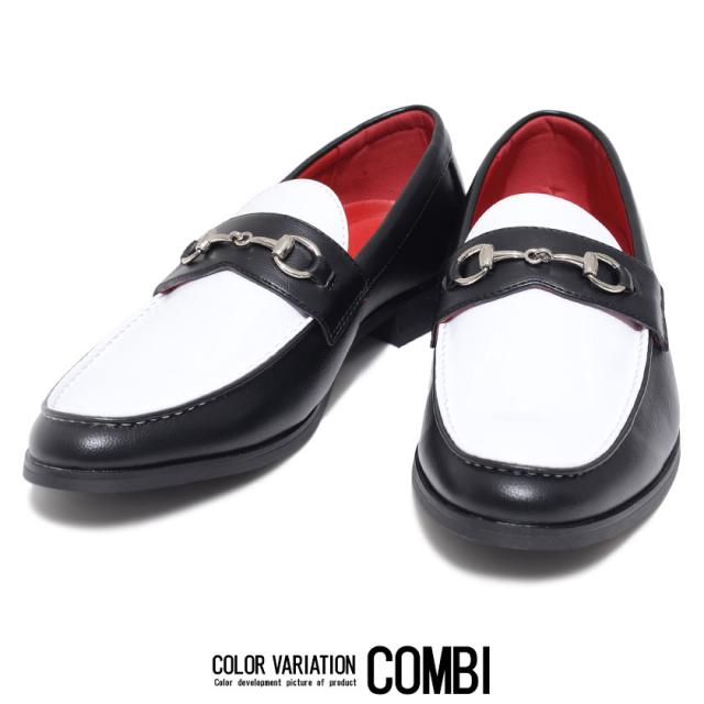 ビット ローファー シューズ ブラック ベージュ シルバーSB select シルバーバレットセレクト ビット付きデザインローファー 即日発送 メンズ スムース コンビ フェイクスエード 靴 きれいめ ビジカジ カジュアル ホワイト 黒 白 [CLE-572]