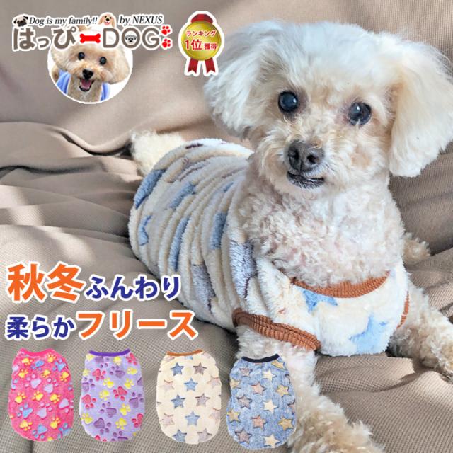 犬 服 犬服 犬の服 ペット用品 ドッグウェア 秋冬 秋 冬 タンクトップ 袖なし フリース 足跡 星柄