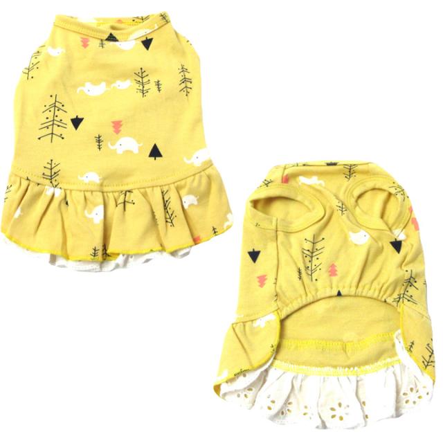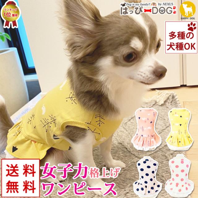 おしゃれでかわいい犬用のワンピースです♪インスタグラムに投稿するときにもピッタリだし、毛抜け防止の為に部屋着としても活躍してくれます♪もちろん、お洒落をしてお散歩するときにもGOOD!!汚れ防止としてもオススメです!裾についているフリルが女の子らしさを格上げ♪袖なしのデザインなのでお洋服を嫌がるワンちゃんにも比較的、簡単に着せやすいのもポイント☆小型犬・中型犬用にサイズはS、M、L、XL、XXLをご用意しました!カラーはイエロー、ピンク、ドットピンク、ドットホワイトの4色をご用意しました♪
