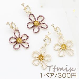 パール調イヤリング 4mm玉イヤリング 五弁花【1ペア】