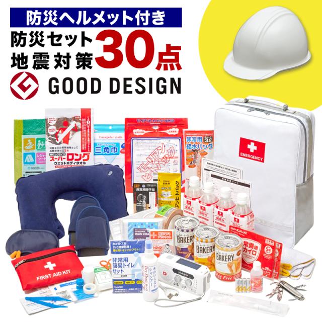地震対策30点避難セット+防災ヘルメット ヘルメット 防災リュック 防災グッズ 国内生産 保存食 非常食 防災グッズ 災害震災 地震対策