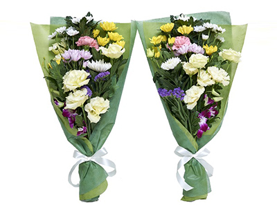お墓やご仏壇に、左右対称にお供えできるよう花束を一対にしてお届けします。