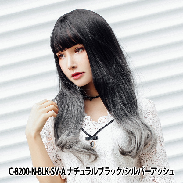 ウィッグ 『Tefure(テフリ) 大人ロングストレート ナチュラルブラック×シルバーアッシュ』 富士達 C-8200
