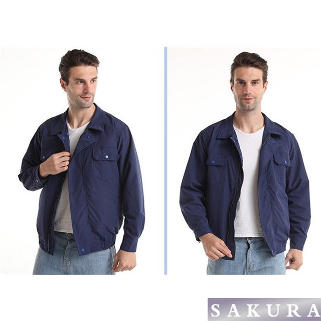ポリエステル・綿混率のユニフォーム素材を採用したオールマイティタイプ空気漏れの少ない高密度素材を使用しています。型崩れしにくく、涼しい空気を逃さない。胸ポケットファスナー付きで、スマホ落下防止。