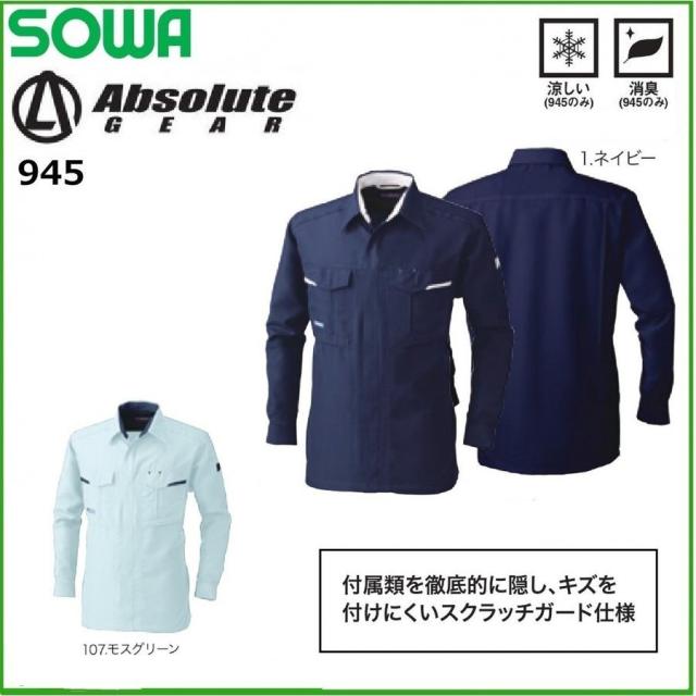 桑和 945 長袖シャツ S〜6L 制電性素材 スクラッチガード仕様 Absolute gear SOWA (ネーム刺しゅうできます)