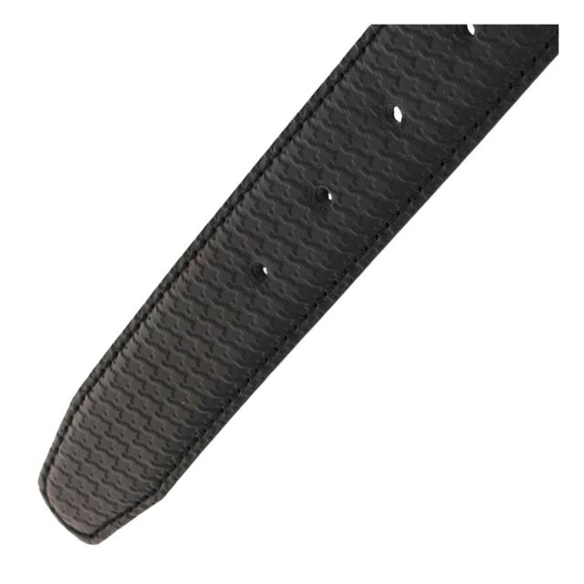 黒マット塗装のバッグルにハンドトゥース(千鳥)の型押しの帯を使用。