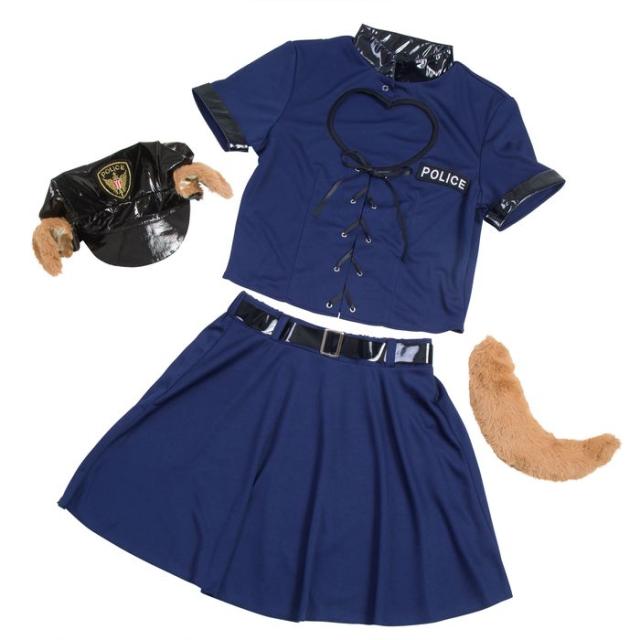 ■商品名:HW レディアニマル ポリス×犬 コスチューム レディースサイズ 女性 帽子 トップス スカート しっぽ ハロウィン コスプレ 衣装 仮装 変装