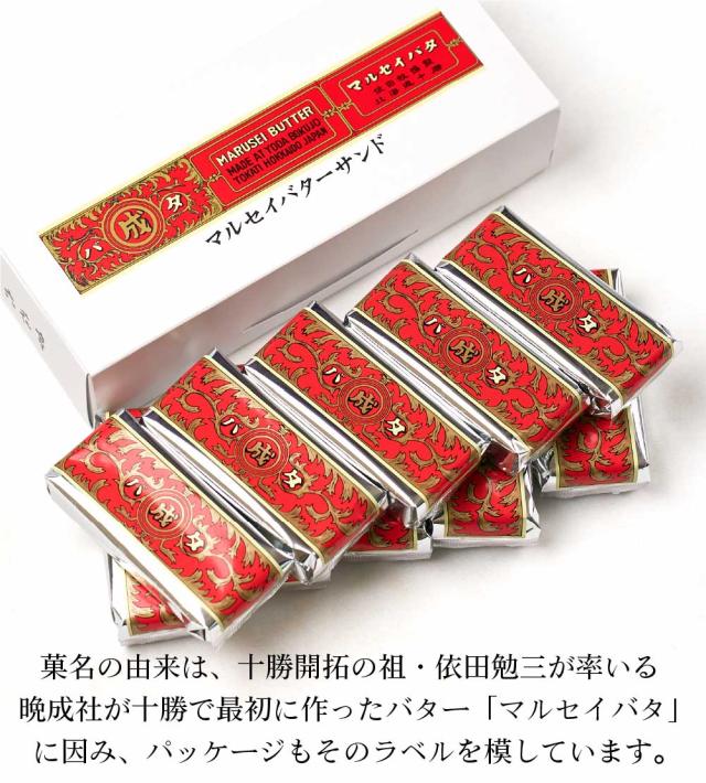| 商品説明 | 北海道代表する有名銘菓 「六花亭 マルセイバターサンド」 専用の小麦粉でつくったビスケットで、ホワイトチョコレートとレーズン、北海道産生乳100%のバターをあわせたクリームをサンドした、ロングセラー商品です。 いつも身近にある北海道のお菓子 お土産として大人気商品です。 |