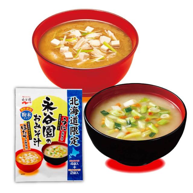 永谷園 北海道限定 うにのみそ汁とほたてのみそ汁 1パック(6袋入) みそ汁 土産 うに ほたて みそしる スープ 北海道限定 お土産 ホワイトデー お返し