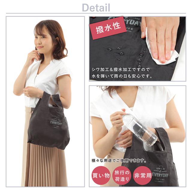ショッピングに、旅行に、ピクニックにと様々なシーンで活躍するエコバッグ 〇折りたたんでコンパクトサイズだから持ち運びに便利です。 〇食材のお買い物に、旅行時のお土産を入れて持ち歩いたりと、とっても便利。 〇シワ加工&撥水加工ですので水を弾いて雨の日も安心です。 旅行の時の荷造り( ポーチ代わり )、非常用持ち出しグッズを入れたり、ちょっとしたプレゼントを入れたり、収納用品としてなど様々な用途でご使用できます。 薄手でかさばらない、コンパクトで超軽量なエコバッグ。 メインバッグにいつも入れておけるサイズなので、いざという時とっても便利。 小さなバッグにも入れておけるサイズ感が魅力です。 畳んでから、本体に付いているゴムでピタッと留めることができます。 【サイズ】 本体 約高さ31×横26×マチ12cm [収納時]約 高さ9.5×横5cm | |