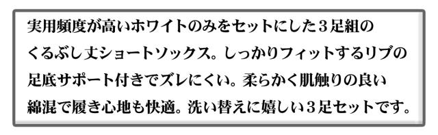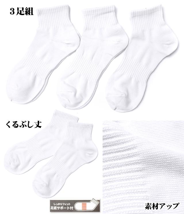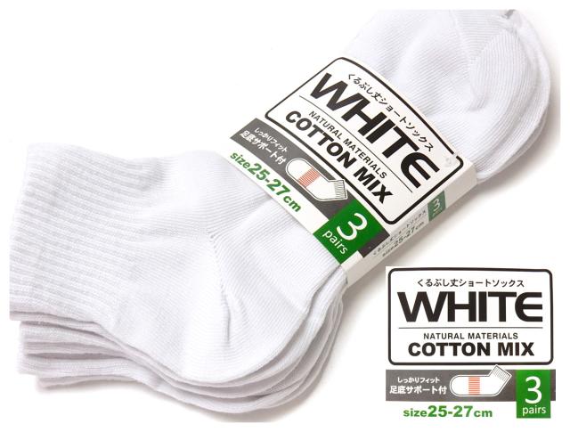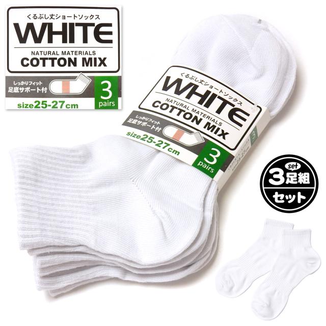 【送料無料】紳士 メンズ 3足組 くるぶし丈 ショートソックス 白 ホワイトのみ しっかりフィット足底サポート 綿混 靴下 25-27cm a-2477【メール便対応】