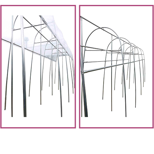 内部中央には、ブドウ木を這わせる為の横通しパイプ、耐荷重用パイプを準備。