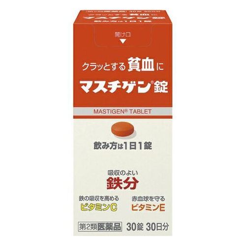 | 注意事項 | ※使用上の注意 ※してはいけないこと。 ※守らないと現在の症状が悪化したり、副作用が起きやすくなります。 ・本剤を服用している間は、他の貧血用薬を服用しないで下さい。 ※相談すること。 ・次の人は服用前に医師、薬剤師又は登録販売者に相談してください。 (1)医師の治療を受けている人。 (2)妊婦又は妊娠していると思われる人。 (3)薬などによりアレルギー症状を起こしたことのある人。 ・服用後、次の症状があらわれた場合は副作用の可能性があるので、直ちに服用を中止し、この箱を持って医師、薬剤師又は登録販売者に相談してください。 (1)皮ふ:発疹、発赤、かゆみ (2)消火器:吐き気、嘔吐、食欲不振、胃部不快感、腹痛 ・服用後、便秘、下痢があらわれることがあるので、このような症状の持続又は増強が見られた場合には、服用を中止し、この箱を持って医師、薬剤師又は登録販売者に相談してください。 ・2週間位服用しても症状がよくならない場合は服用を中止し、この箱を持って医師、薬剤師又は登録販売者に相談して下さい。 ※保管及び取扱い上の注意 ・直射日光の当たらない湿気の少ない涼しい所に密栓して保管してください。 ・小児の手の届かない所に保管してください。 ・他の容器に入れ替えないで下さい。誤用の原因になったり品質が変わることがあります。 ・錠剤の色が落ちることがありますので、濡れた手で錠剤を触らないでください。 ・手に触れた錠剤は容器に戻さないでください。 ・使用期限の過ぎた製品は服用しないで下さい。 ・容器に乾燥剤が入っています。 ・誤って服用しないで下さい。 |