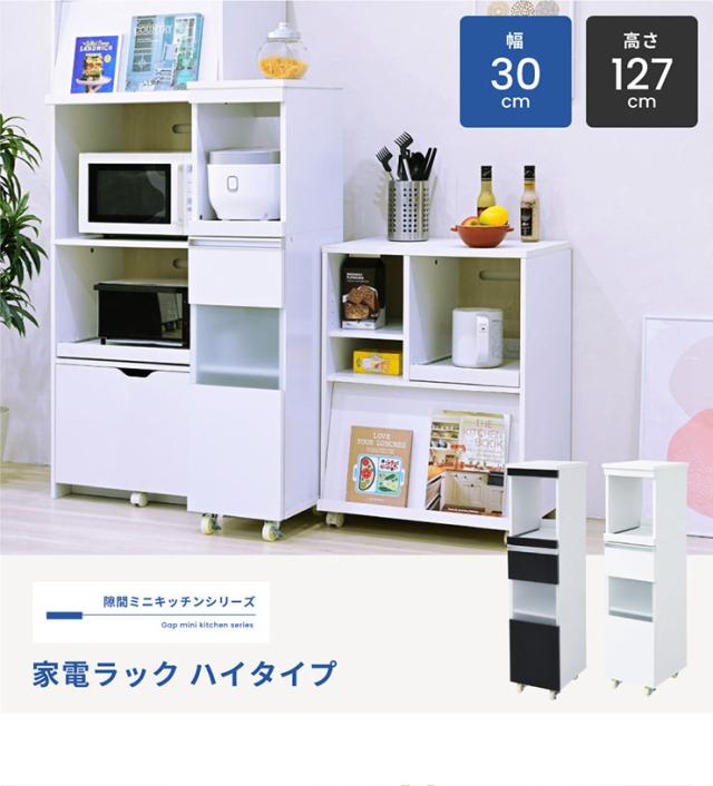【コンセント・キャスター付き】隙間ミニキッチンシリーズ 家電ラック ハイタイプ 幅30cm FKC-0003 2色対応 キッチン収納 キッチン レンジワゴン おしゃれ シンプル 収納棚 食器棚 炊飯器台 炊飯ジャー収納