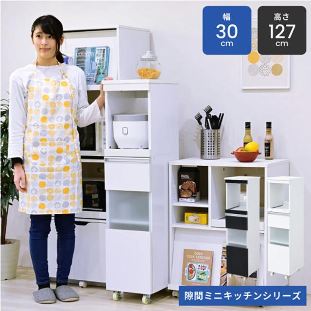 【コンセント・キャスター付き】隙間ミニキッチンシリーズ 家電ラック ハイタイプ 幅30cm FKC-0003 2色対応 キッチン収納 キッチン レンジワゴン おしゃれ シンプル 収納棚 食器棚 炊飯器台 炊飯ジャー収納
