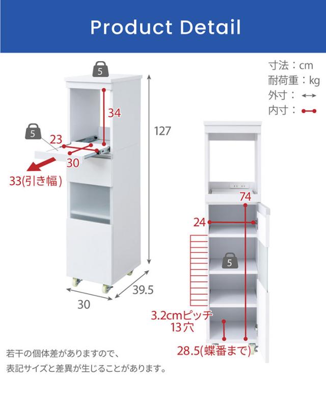 全体:W30 x D39.5 x H127cm