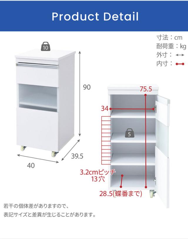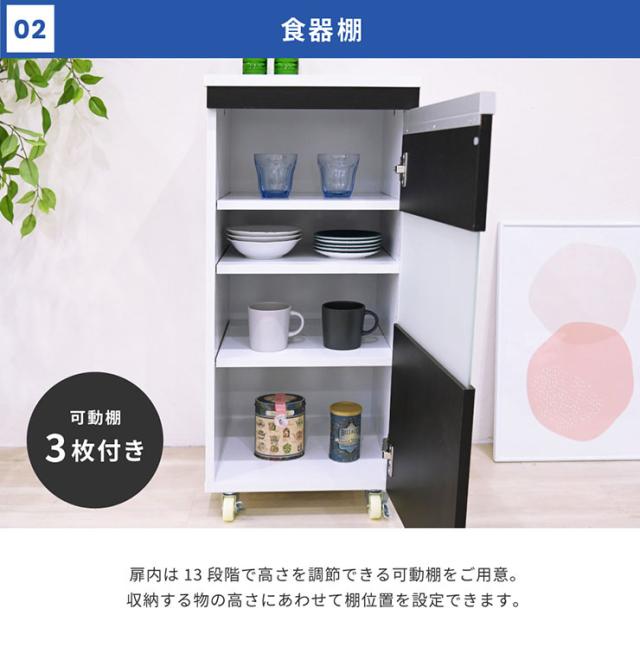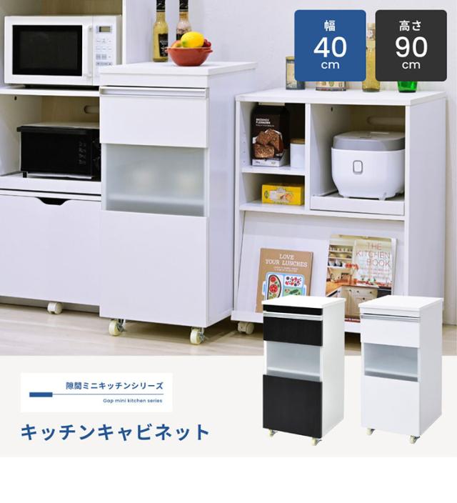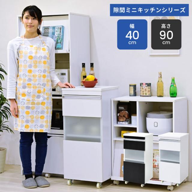 【キャスター・可動棚3枚付き】隙間ミニキッチンシリーズ キャビネット 幅40cm FKC-0005 2色対応 キッチン収納 キッチン レンジワゴン おしゃれ シンプル 収納棚 食器棚 炊飯器台 炊飯ジャー収納