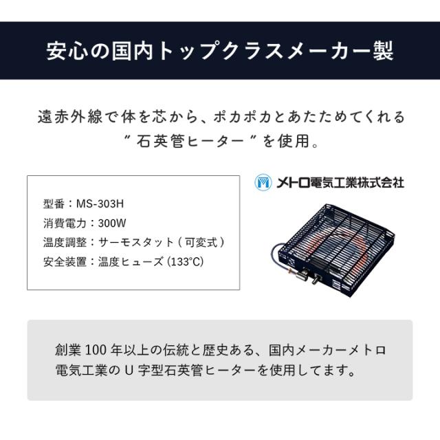 小さなお子さんがコタツのヒーターユニット部に触れてやけどを負う事例も寄せられておりますので、使用に際しては併せて注意が必要です。