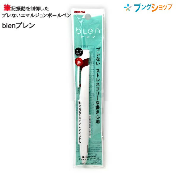 ゼブラ しっかり濃く!! 筆記振動を制御したブレないエマルジョンボールペン ブレン 0.7mm 白軸 赤インク P-BA88-R ぶれない ブレン blen ボールペン ゼブラ