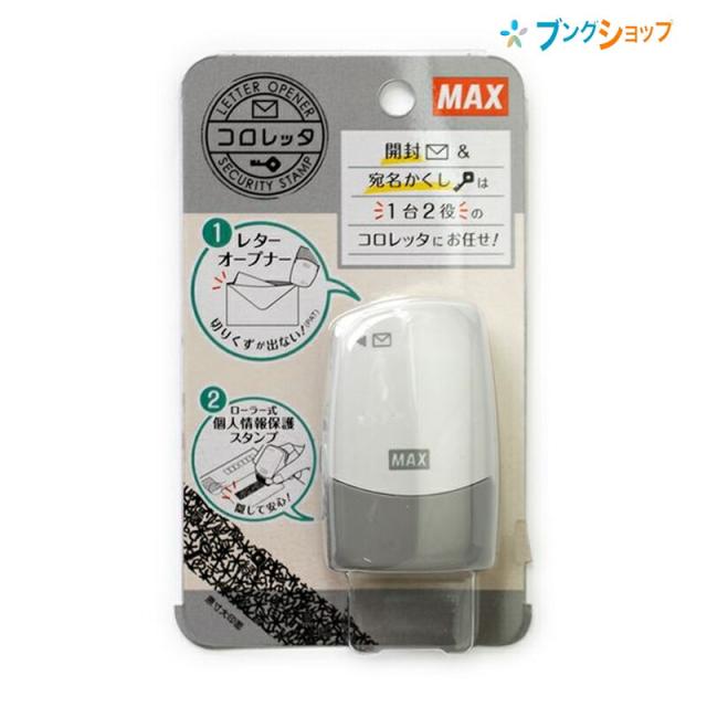 マックス レターオープナー・ローラー式個人情報保護スタンプ コロレッタ ホワイト SA-151RL/W2 SA90174 適合機種/SA-151RL 開封・宛名かくし 1台2役のコロレッタ 油性顔料インク使用 スーとスライドらくらく開封オープナー