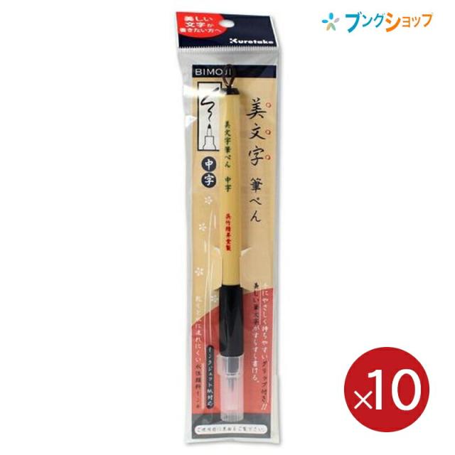 【10本パック】 呉竹 クレタケ 筆ペン 美文字筆ペン 中字 黒 だるま軸の毛筆をイメージ 手に持ちやすいラバーグリップ XT3-10S お買い得 【送料無料】