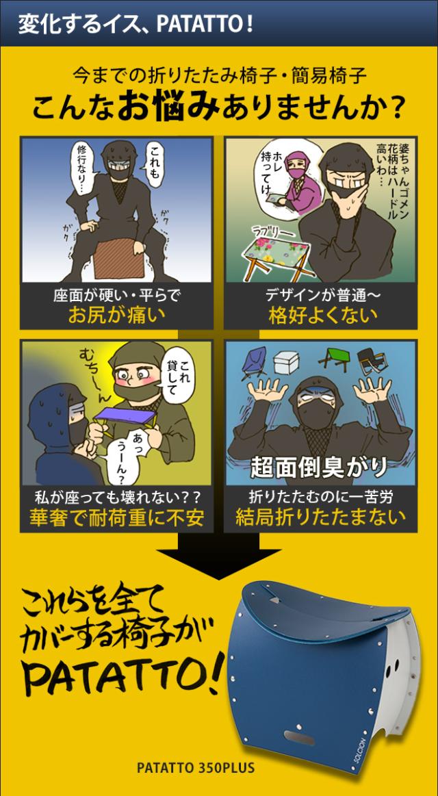 折りたたみチェア イス パタット350プラス PATATTO350PLUS 携帯 たためる アウトドア 椅子