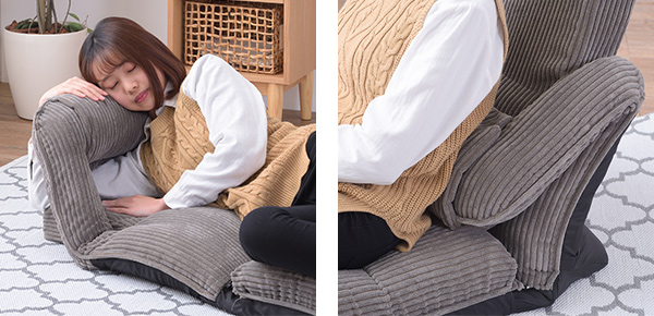 ●お好みの姿勢に合わせて、背部と頭部を自在に動かせる便利なフロアチェアです。
