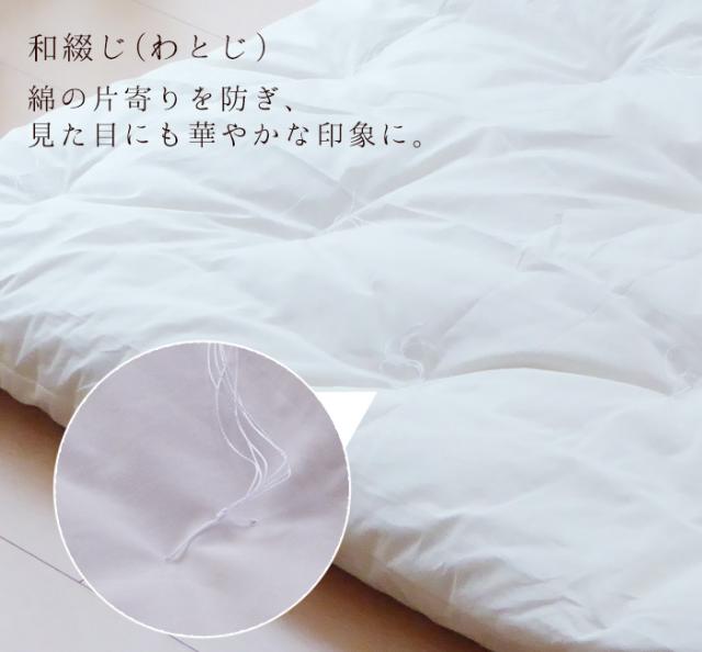 | 【通常タイプ】和とじ仕上げ、4隅房付き(掛敷布団共に) 【薄型キルトタイプ】波形キルト、両面無地(掛布団)/和とじ仕上げ、4隅房付き(敷布団) |