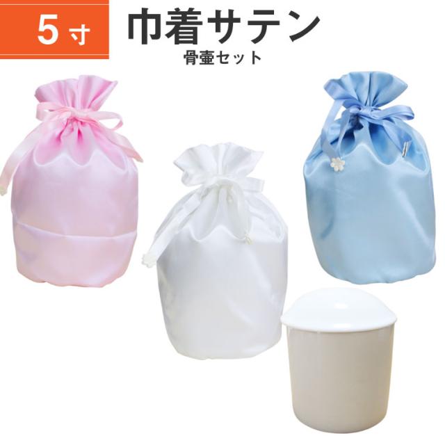 骨袋 骨壷カバー【骨壷セット】5寸 サテン 巾着型 シャイニーカラー 白並 骨壺 仏具 仏壇 骨壷 骨壺 骨壷カバー 49日 後飾り お悔やみ 供養 犬 猫 ペット供養にも
