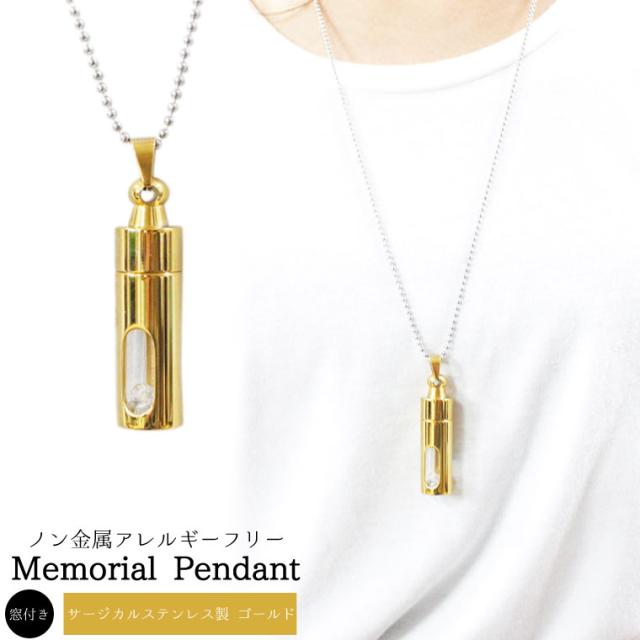 遺骨ペンダント サージカルステンレス ゴールド 窓付き 砂時計型 ロケットペンダント メモリアルペンダント ボールチェーン ネックレス 遺骨カプセル 遺骨入れ 遺骨 分骨 ミニ骨壷 骨壺 仏具 手元供養 ペット供養にも