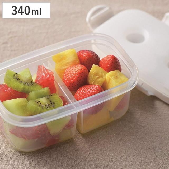 お弁当箱でも保存容器としても、どちらでも使える保冷剤付き弁当箱340mlです。付属の保冷剤を冷凍庫で一晩凍らせて蓋に付けるだけで毎日のお弁当やサラダ、フルーツなど暑い夏の日でも安心して持ち運びができます。仕切り付きなのでおかずを種類によって分けて入れられます。